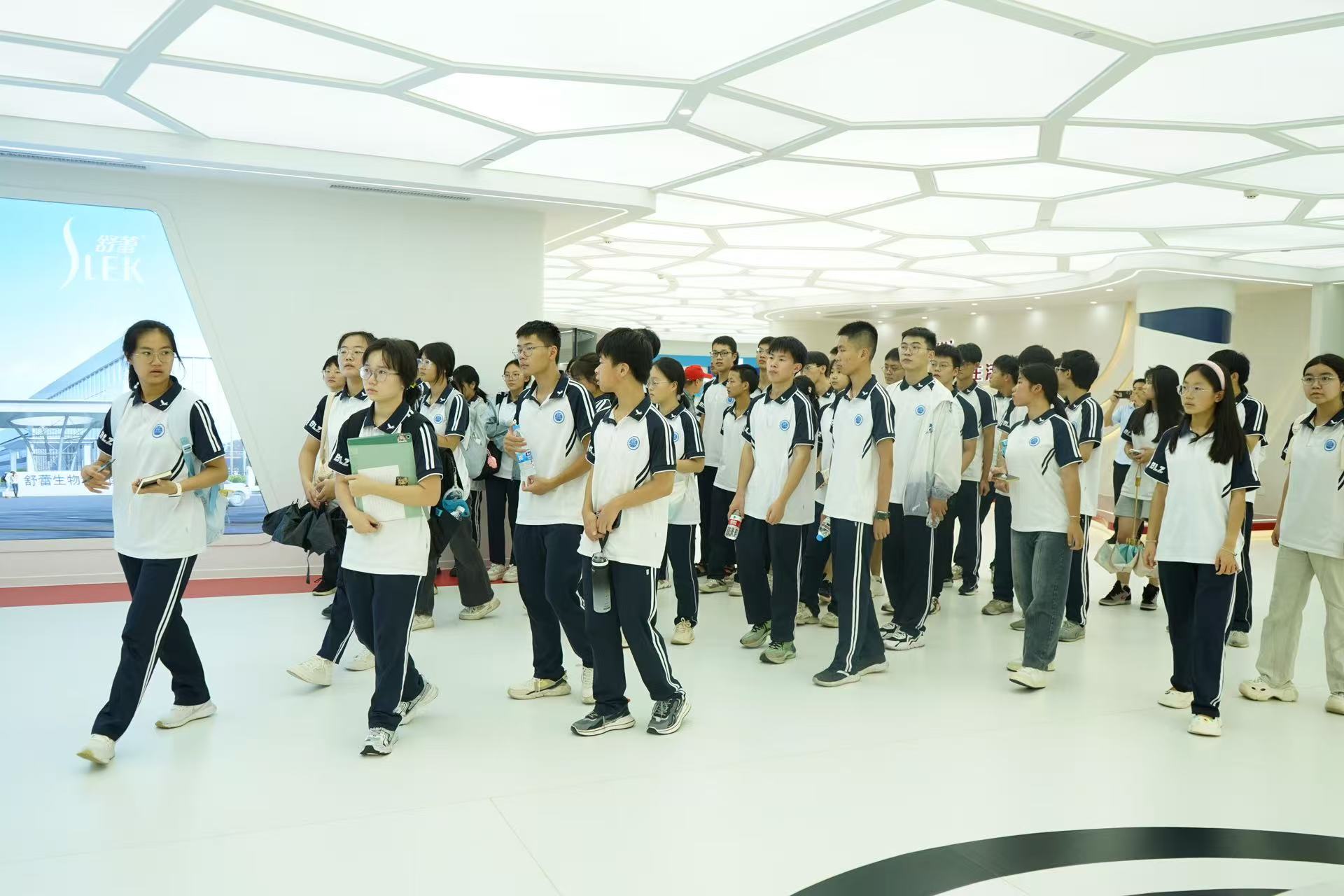 本次活動的第一站,同學們走出課堂、走入“舒蕾生物科技園”,一起探索企業背后的故事。同學們參觀了企業展廳、研發中心及生產車間,近距離感受產品生產及研發過程。